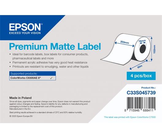 EPSON Premium Matte Label - Continuous Roll: 203mm x 60m