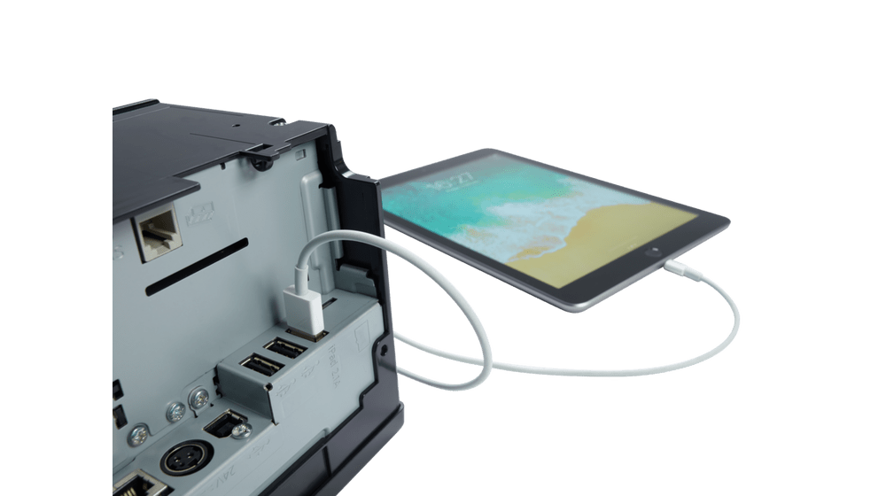 K tiskárně TM-m30II-H lze přímo připojit skenery, klávesnice a další periferní zařízení, a zajistit tak předávání dat například do tabletu, který připojení těchto zařízení běžně neumožňuje.