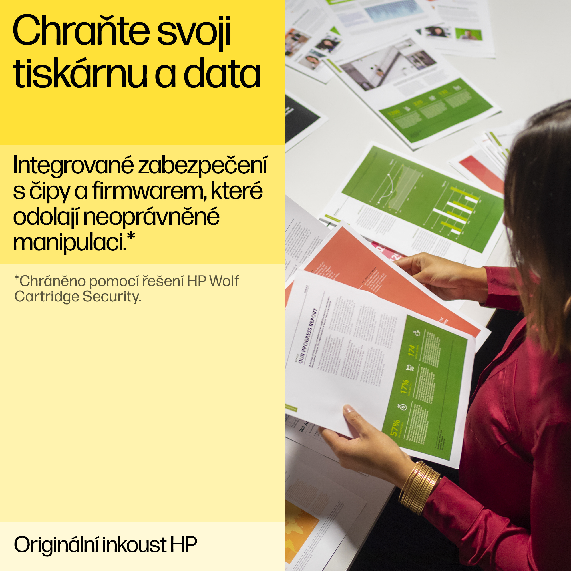 Pokud chcete mít ostré a jasné výtisky, volte originální inkoustové kazety HP, které jsou navrženy spolu s tiskárnou.