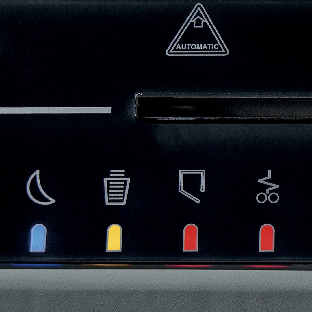 Energy Smart System a automatické odpojení od sítě zajišťují maximální úsporu energie. Při podržení prstu po dobu 5 sekund na ovladači Forward stroj pracuje nepřetržitě po dobu 30 sekund. Skartovačka je vybavená Energy Smart Systémem - automatickým odpojením od elektrické sítě pro maximální úsporu energie, automatickým Start&Stopem, bezpečnostním zastavením při otevření dvířek, plném vaku s odpadem a automatickým zpětným chodem v případě zaseknutí. Skříň o objemu 40 litrů je opatřená praktickými kolečky.